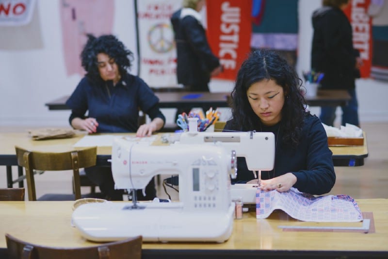 In recent years, Sifuentes has strongly advocated for immigrants in her artwork through projects like her U.S. Citizenship Test Sampler and Protest Banner Lending Library. Much of her work has been inspired by her parents’ own struggles as new immigrants and well as the large undocumented Latinx population that surrounded her as a child.
