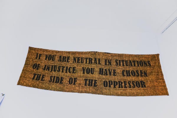 Sifuentes’ Protest Banner Lending Library will be at the Chicago Cultural Center through May 17. After that, people hoping to contribute or borrow from the library can do so by contacting Sifuentes on Facebook.