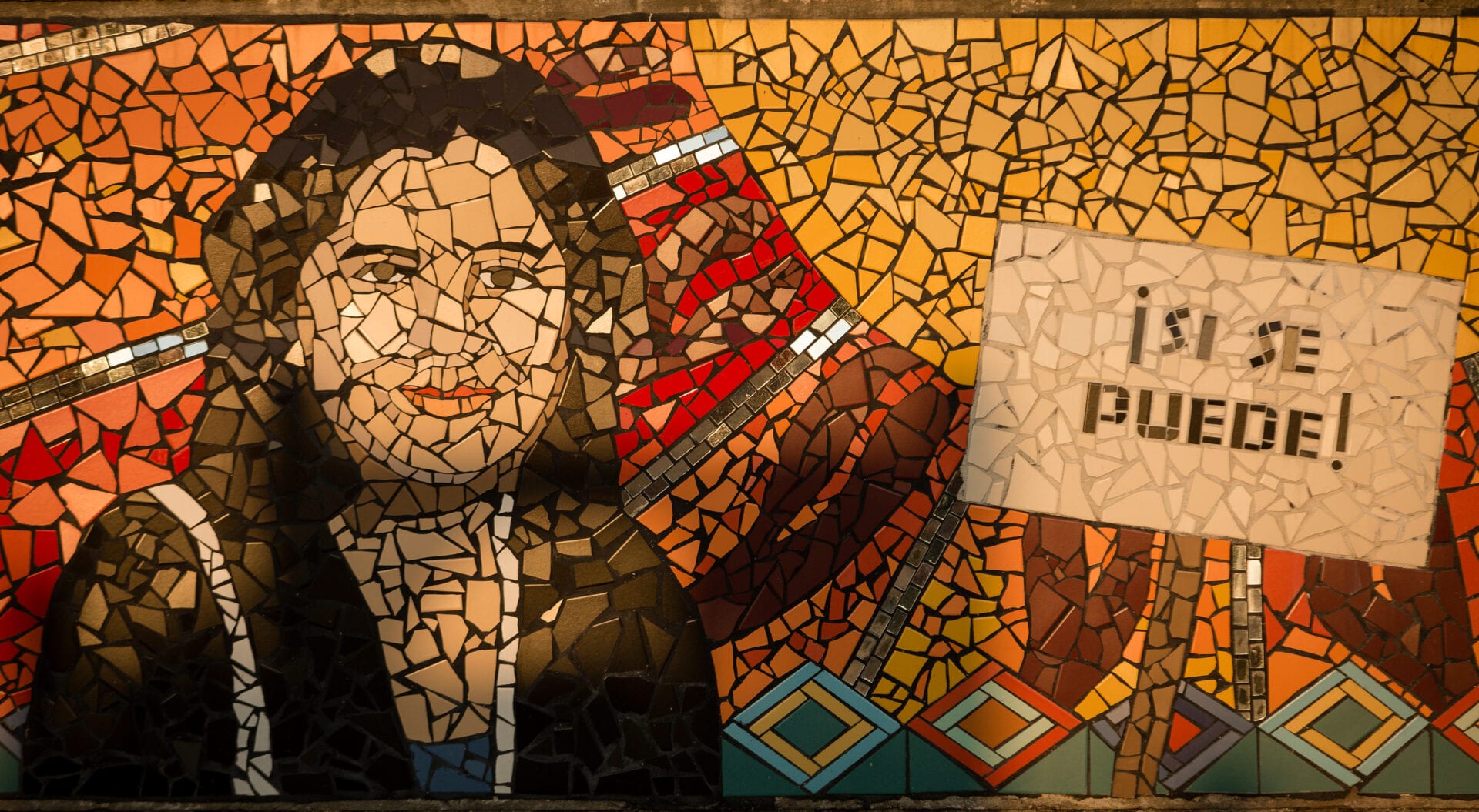Un mural en el campus de la escuela Saucedo dice: “sí se puede” en español. Alrededor de 40% de los estudiantes están aprendiendo inglés. Michelle Kanaar / WBEZ