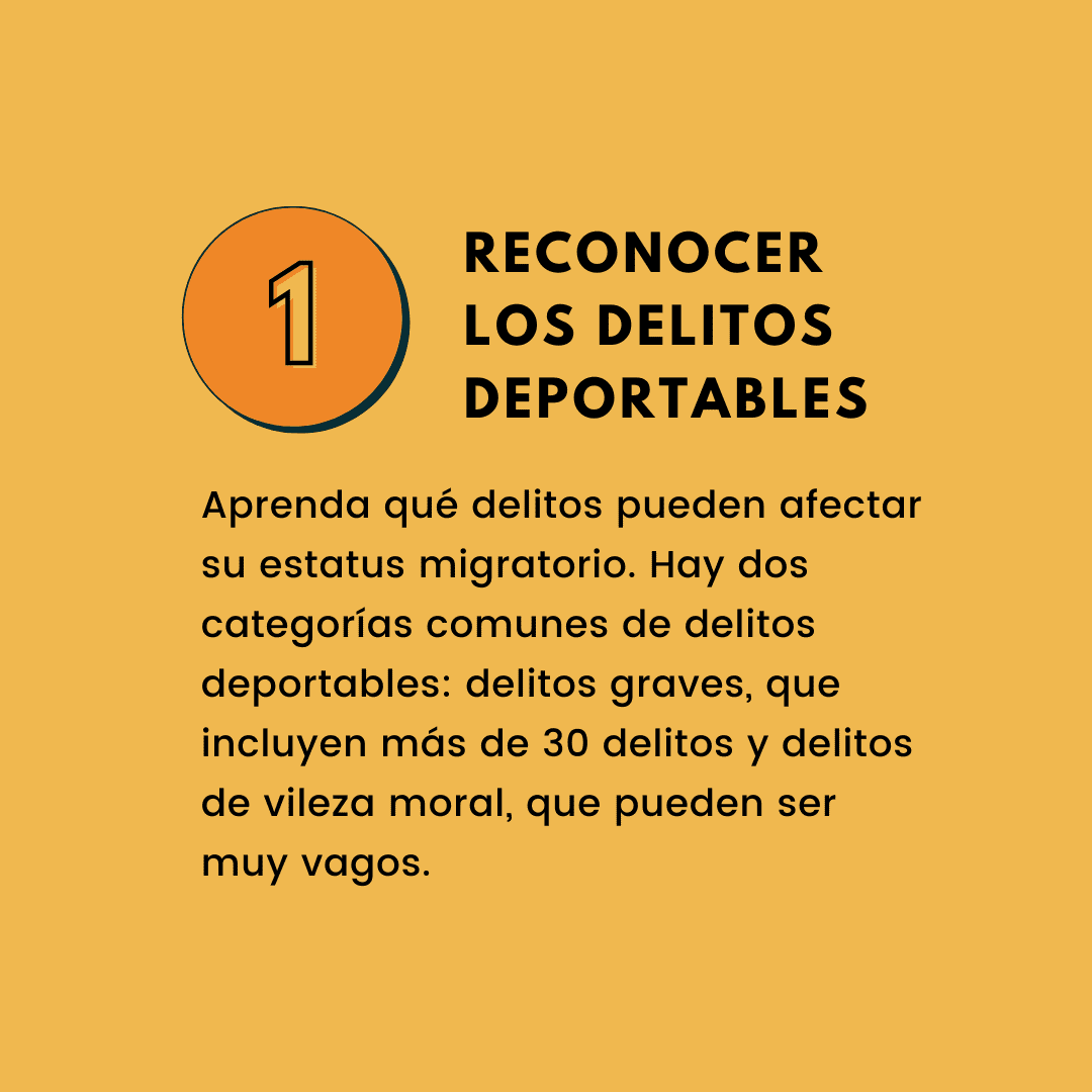 Cuando se trata de qué crímenes podrían hacer deportar a un no-ciudadano, la ley de inmigración es tanto exacta como vaga. Las condenas por deportación generalmente caen bajo dos categorías: delitos graves agravados – una lista de más de 30 tipos de delitos, incluyendo el tráfico de drogas, la presentación de una declaración de impuestos falsa, y la falta de comparecencia en los tribunales – y crímenes “que implican la vileza moral.”