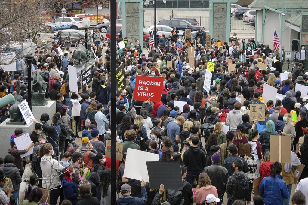 Más de 200 personas se reunieron para manifestarse contra el racismo y la violencia hacia los asiáticos tras los tiroteos en Atlanta. Diane Bou Khalil/Borderless Magazine