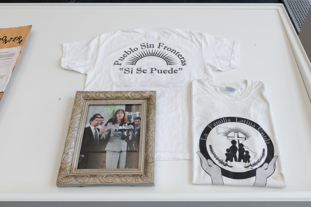 Centro Sin Fronteras presenta objetos seleccionados de sus archivos y una historia de su trabajo dentro de la exhibición de Andrea Bowers, que se extiende desde el 20 de noviembre del 2021 hasta el 27 de marzo del 2022 en el Museo de Arte Contemporáneo de Chicago.