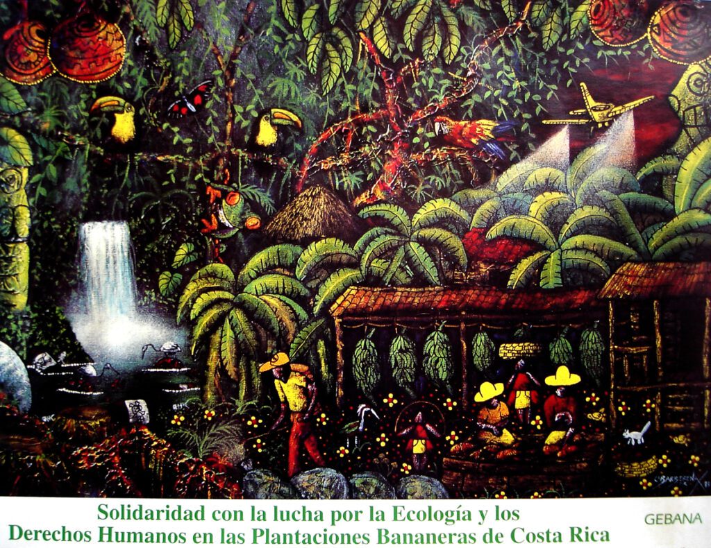 My brother saw my drawings and was like, “We could sell these.” We went to a gallery in a hotel, where a woman sold souvenirs, and she liked my drawings. I started producing more and more. It was always partly because I wanted to show people who Nicaraguans are. Because I moved from Nicaragua, I was having to find my own roots and history. I did a poster about the pesticides that are prohibited in the United States, but the U.S. sells them to Central America. A labor rights organization named ASEPROLA invited me to submit a poster design for workers’ rights in the banana plantations in Costa Rica and the impact of pesticides on the environment. My proposal won, and the German fair trade organization GEBANA printed 5,000 posters to raise funds for workers rights in Costa Rica.