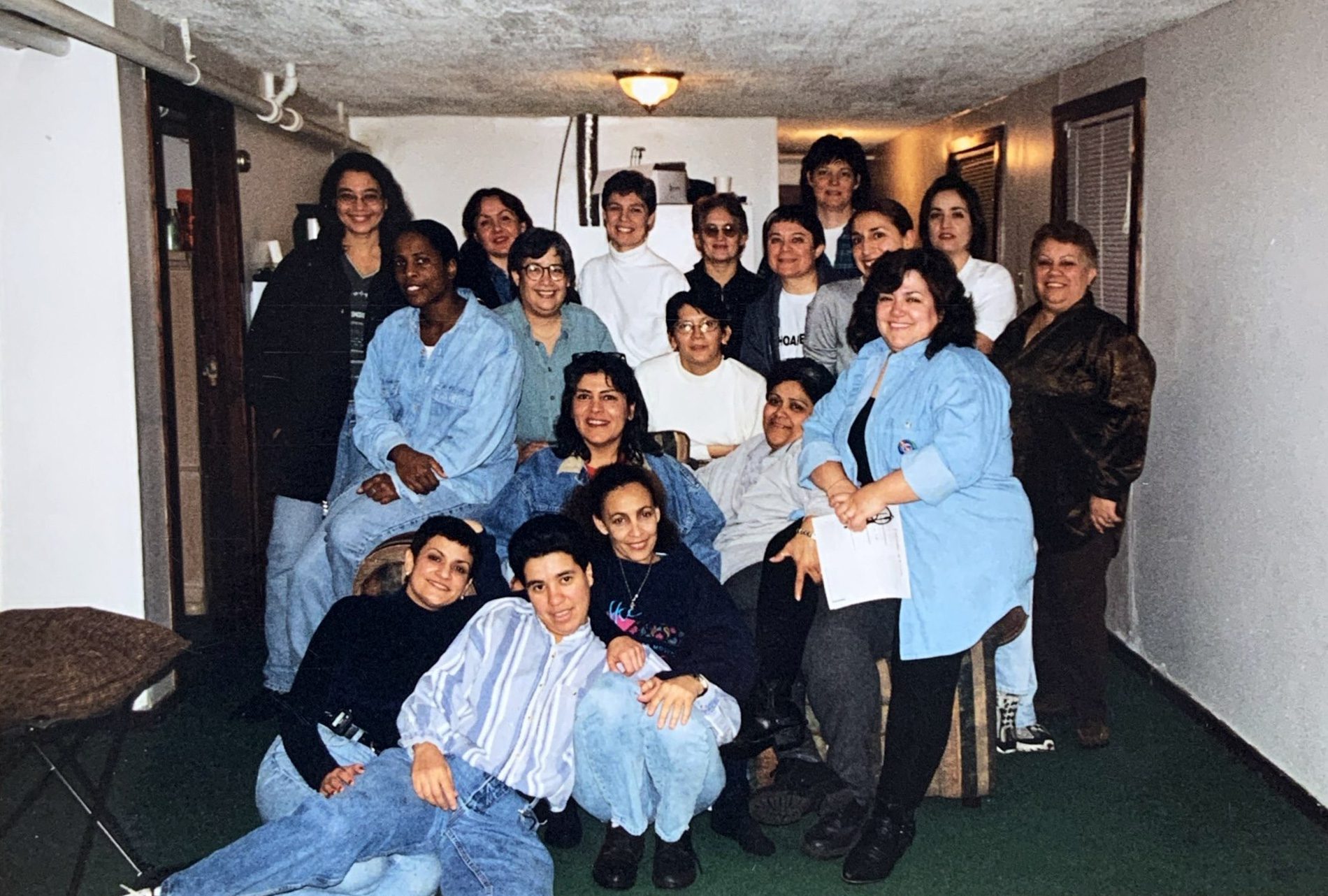 Amigas Latinas members gather for a platica (chat) in founding board member Lydia Vega's basement in Chicago, Ill. in the late 1990s.Photo courtesy of Gerber/Hart Library and Archives