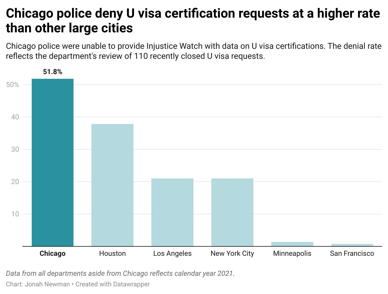 An Injustice Watch investigation found that the department has denied hundreds of U visa certification requests from undocumented crime victims this year, many of them at odds with federal certification standards and some that appeared to violate state law.
