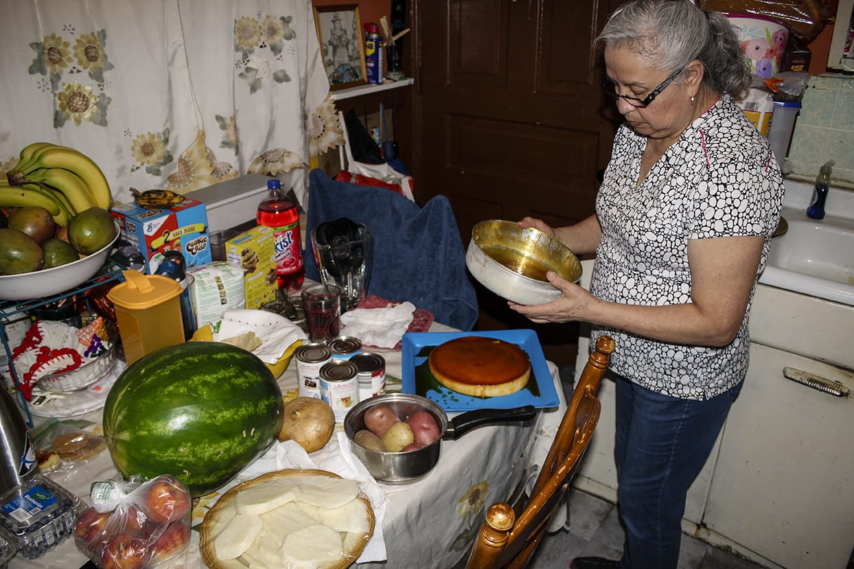 Emma Roa hace un flan para su vecina en el barrio de Wicker Park de Chicago, Ill. 12 de mayo de 2020. Fernando Moreno para Borderless Magazine