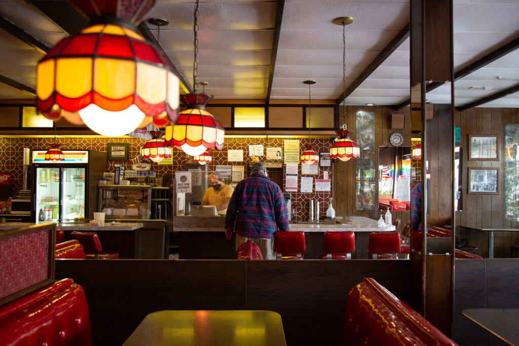 One recent morning, six patrons sat distanced around the diner’s perimeter. Some sat in pairs, but most were alone. “Kiss Me” by Sixpence None the Richer played on the radio. Oliveros Espino, who works as the only front-of-house staff these days, offered a woman a coffee refill.