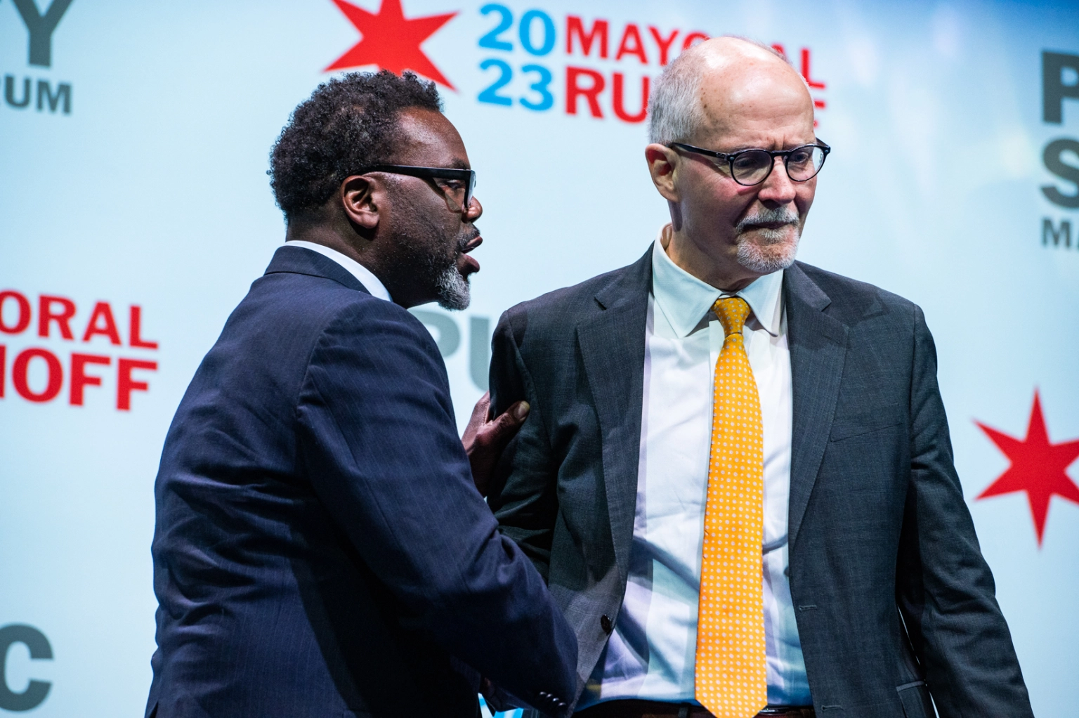 Former schools CEO Paul Vallas came in first of nine candidates in the Feb. 28 election, receiving 33 percent of the vote. Cook County Commissioner Brandon Johnson followed with about 22 percent. The two knocked out incumbent Mayor Lori Lightfoot.