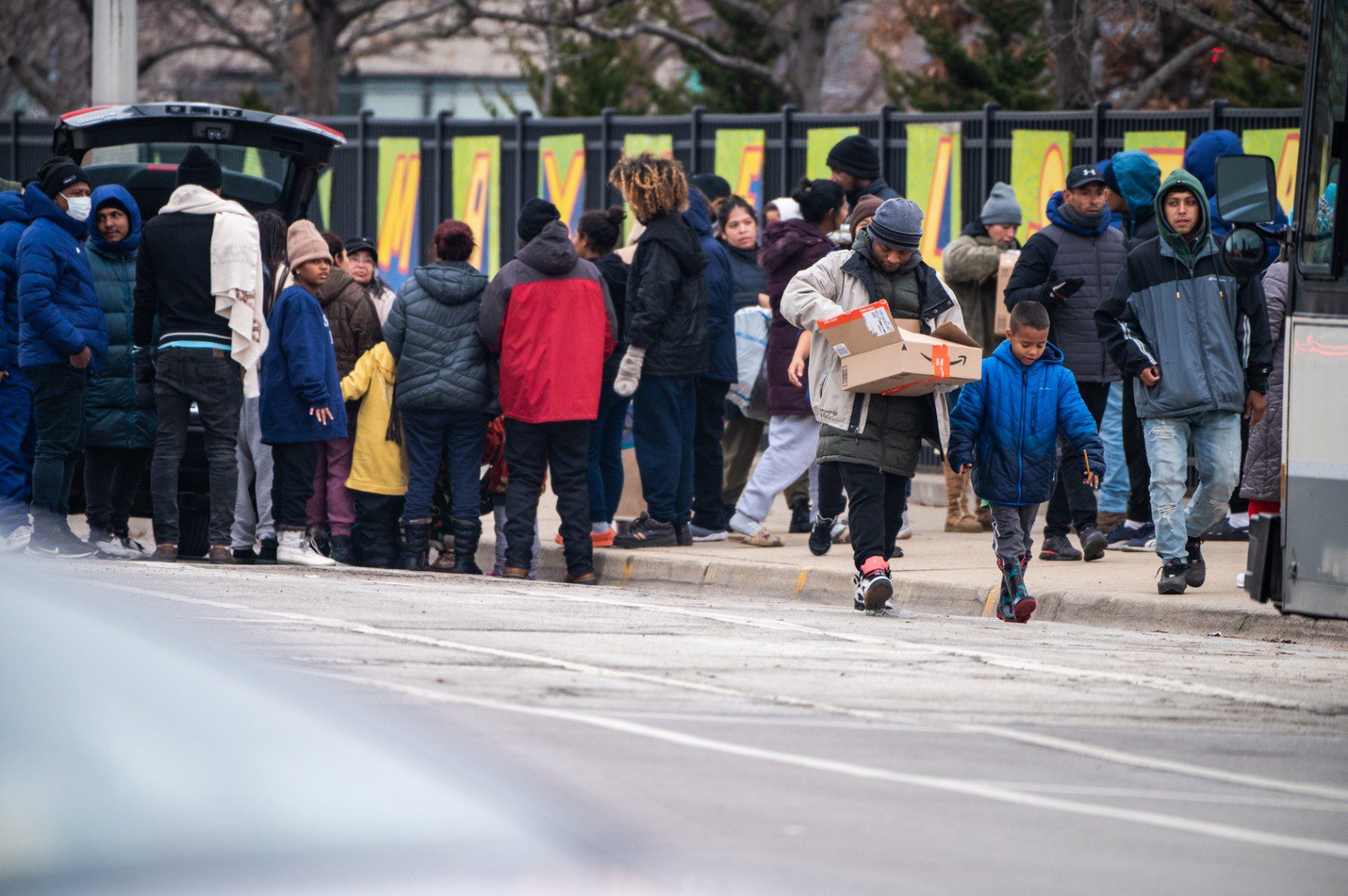 When asylum seekers arrive in Chicago via bus, train or “other means,” they are received at the landing zone to await placement in a city shelter, city officials have said. Once there, they are provided with meals, blankets, warm clothing and space on a “warming bus.”