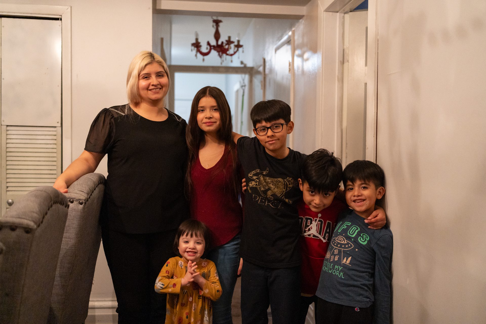 Estela Gamino watched over her children as they bounced around their gray couches inside their apartment on Chicago’s North Side.